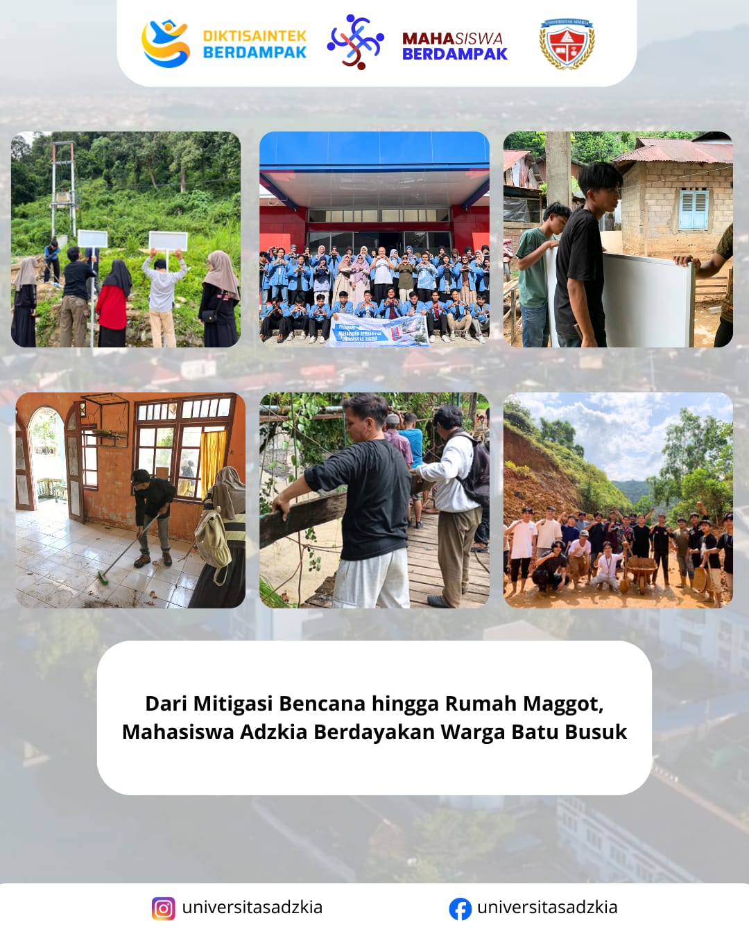 PADANG, ALINIANEWS.COM — Mahasiswa Universitas Adzkia melaksanakan kegiatan mitigasi bencana dan pengembangan bank sampah di Batu Busuk, Kelurahan Lambung Bukit, Kota Padang sebagai bagian dari program Mahasiswa Berdampak yang bertujuan memperkuat kesiapsiagaan masyarakat serta meningkatkan kesadaran terhadap pengelolaan lingkungan.