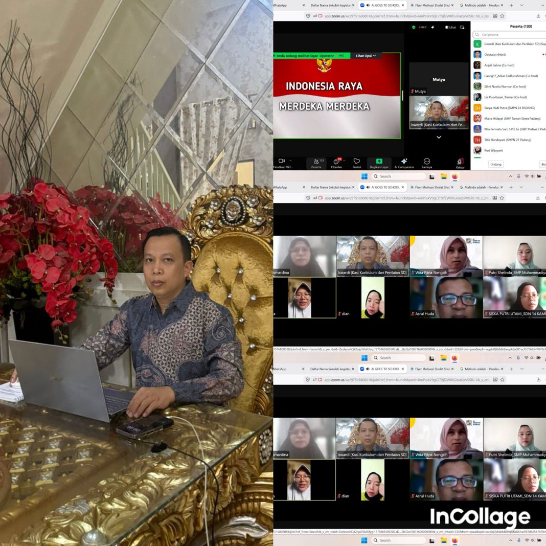 Masyarakat Anti Fitnah Indonesia (MAFINDO) wilayah Padang bekerja sama dengan Dinas Pendidikan Kota Padang menyelenggarakan kegiatan literasi digital dengan fokus pada pemanfaatan kecerdasan buatan (AI) dalam dunia pendidikan. Kegiatan ini dilaksanakan secara daring melalui Zoom Meeting pada pukul 08.00–13.00 WIB dan diikuti oleh 130 orang guru dari berbagai sekolah di Kota Padang.