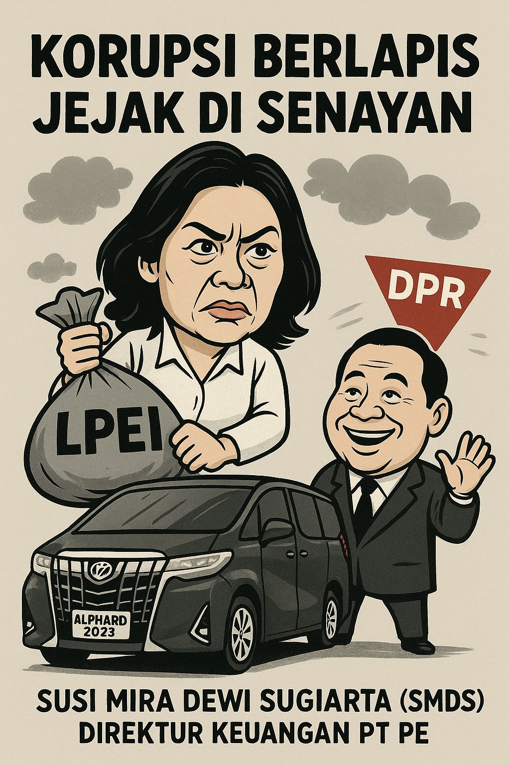 ALINIANEWS.COM — Kasus korupsi yang kini membelit Lembaga Pembiayaan Ekspor Indonesia (LPEI) semakin memperlihatkan wajah asli dari praktik penyalahgunaan kekuasaan di negeri ini: korupsi yang berlapis, sistematis, dan melibatkan jejaring lintas sektor. Nama Susi Mira Dewi Sugiarta (SMDS) selaku Direktur Keuangan PT PE memang menjadi sorotan awal, tetapi jejak perkara ini jelas tidak berhenti pada satu individu atau satu perusahaan saja.