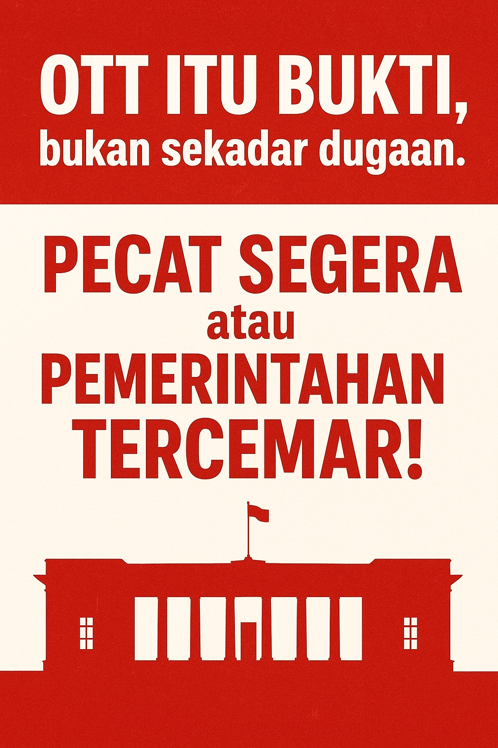 Menunggu proses hukum selesai adalah jawaban normatif, tapi justru berbahaya. Mengapa? Karena publik tahu bedanya antara OTT dengan sekadar laporan dugaan korupsi. OTT adalah bukti yang terang benderang. Jika seorang pejabat yang tertangkap tangan masih dipertahankan di kursinya, yang rusak bukan hanya wibawa jabatan itu, tapi juga citra pemerintahan Presiden sendiri.
