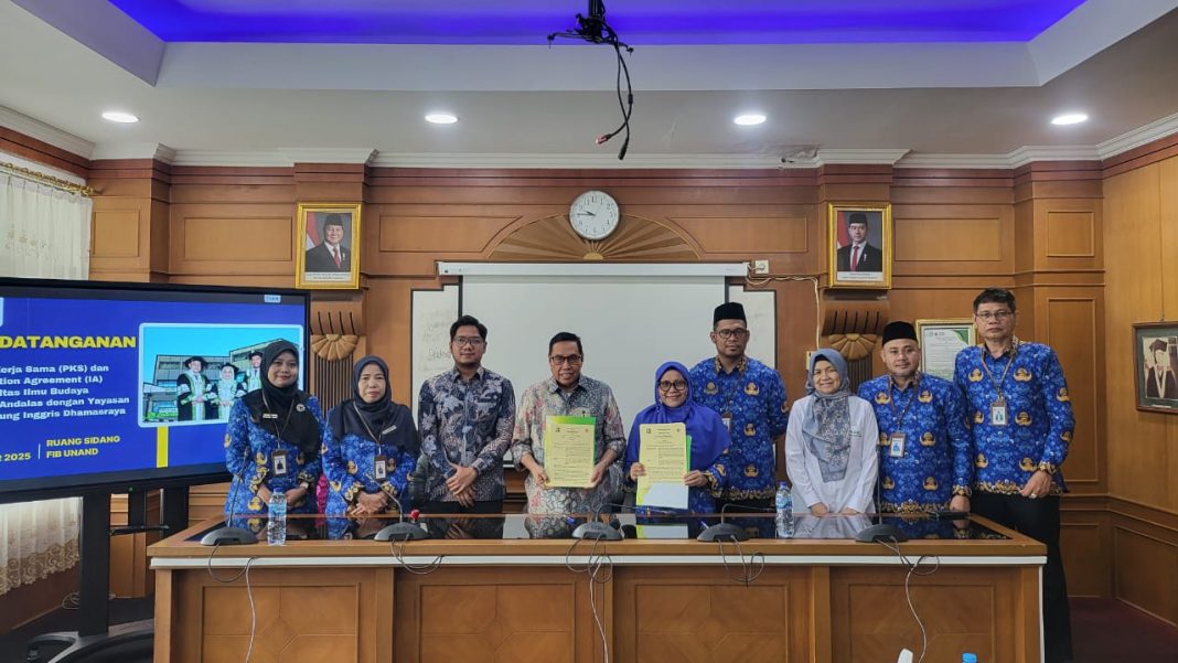 PADANG, ALINIANEWS.COM— Fakultas Ilmu Budaya Universitas Andalas (FIB UNAND) menjalin kerja sama strategis dengan Kampung Inggris Alinia Dharmasraya melalui penandatanganan Perjanjian Kerja Sama (PKS) dan Implementasi Agreement, Senin (10/10), di Ruang Sidang FIB UNAND.