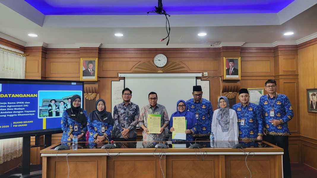 Fakultas Ilmu Budaya Universitas Andalas (FIB Unand) terus menunjukkan komitmennya dalam memperluas cakrawala pendidikan tinggi yang berdampak bagi masyarakat dan dunia kerja. Komitmen itu diwujudkan melalui penandatanganan Perjanjian Kerja Sama Strategis dengan Kampung Inggris Alinia, sebuah lembaga pendidikan bahasa Inggris yg komprehensif dan pengembangan SDM yang tumbuh pesat di bawah naungan Yayasan Alinia Entrepreneur Indonesia.
