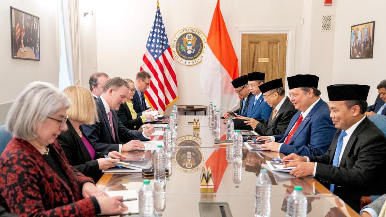 Pertemuan tersebut turut dihadiri Duta Besar RI untuk AS Dwisuryo Indroyono Soesilo, Sekretaris Kemenko Perekonomian Susiwijono Moegiarso, Deputi Bidang Koordinasi Kerja Sama Ekonomi dan Investasi Edi Prio Pambudi, Staf Khusus Menko Perekonomian Rizal Mallarangeng, serta Asisten Deputi Kerja Sama Ekonomi Bilateral Irwan Sinaga. (*/Rel)