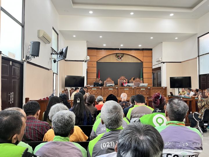 Sebanyak 12 pengemudi hadir langsung di ruang sidang utama Prof Oemar Seno Adji, PN Jakarta Selatan. Salah satu dari mereka, Mulyono, mengaku hadir sebagai sahabat lama Nadiem yang ikut merintis Gojek sejak 2010.