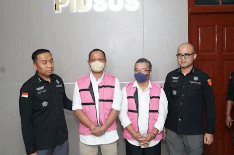 Kedua tersangka dijerat dengan Pasal 2 ayat (1) subsidair Pasal 3 jo Pasal 18 Undang-Undang Nomor 31 Tahun 1999 tentang Pemberantasan Tindak Pidana Korupsi, sebagaimana telah diubah dengan Undang-Undang Nomor 20 Tahun 2001, jo Pasal 55 ayat (1) ke-1 KUHP.