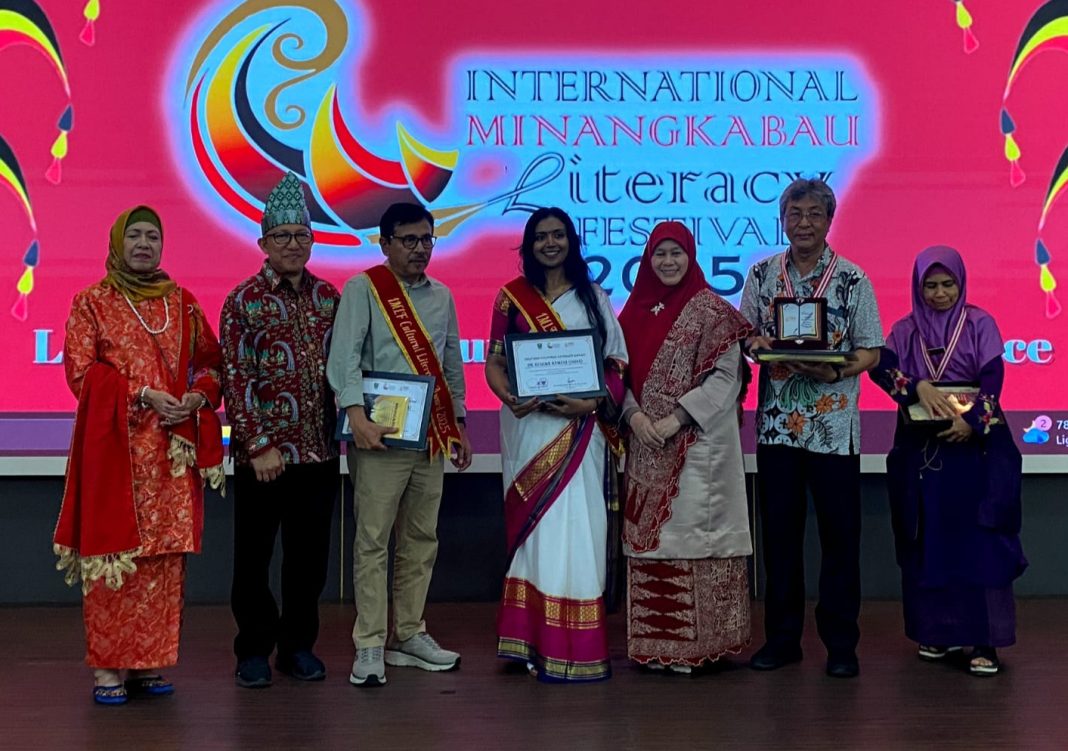 PADANG, ALINIANEWS.COM — The Third International Minangkabau Literacy Festival (IMLF-3) memberikan penghargaan kepada Leni Marlina dan Ramli Djafar.