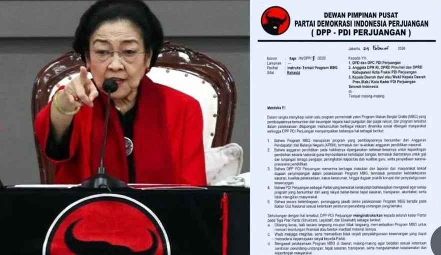 “DPP PDI Perjuangan menginstruksikan kepada seluruh kader Partai pada Tiga Pilar Partai (Struktural, Legislatif, dan Eksekutif) dilarang keras, baik secara langsung maupun tidak langsung, memanfaatkan Program MBG untuk mencari keuntungan finansial atau bentuk manfaat material lainnya,” demikian salah satu poin instruksi dalam surat tersebut, dikutip pada Jumat (27/2/2026).