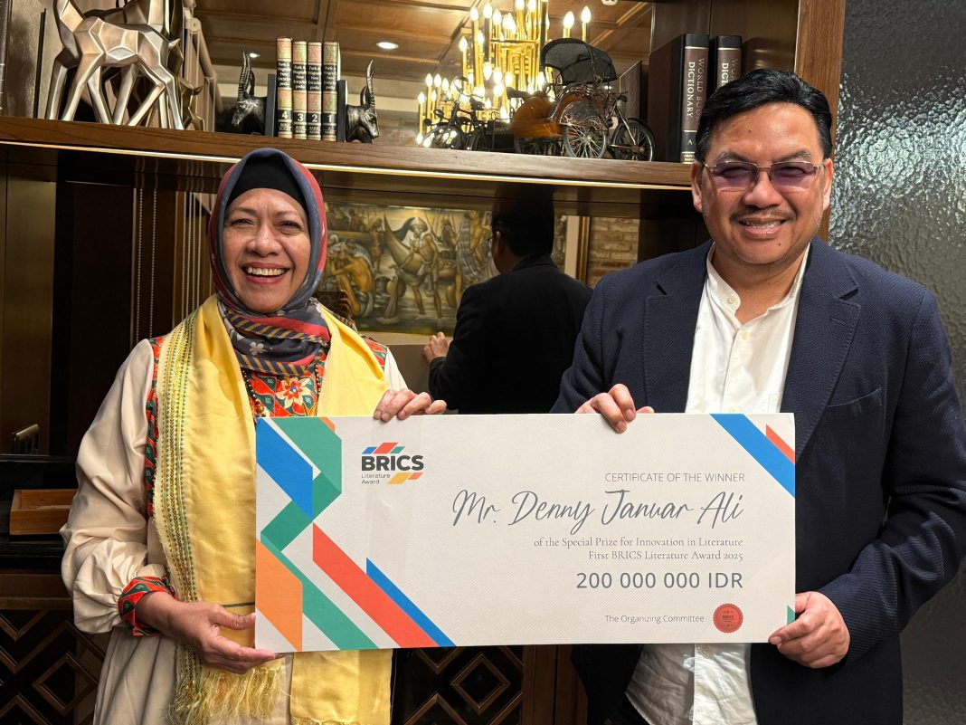 JAKARTA, ALINIANEWS.COM – Denny JA seorang penulis dan penyair Indonesia, menerima Penghargaan Sastra Inovasi BRICS atas kontribusinya dalam mengembangkan genre puisi esai di Kairo beberapa waktu lalu. Penghargaan ini diserahkan oleh Pimpinan BRICS Indonesia  Sastri Bakry  tgl 11 Februari  2026 di Hotel Aryaduta.